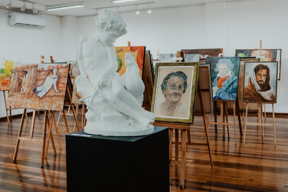 Possui acervo de ~230 obras, 80% de artistas locais; realiza o Salão de Artes Plásticas desde 1985